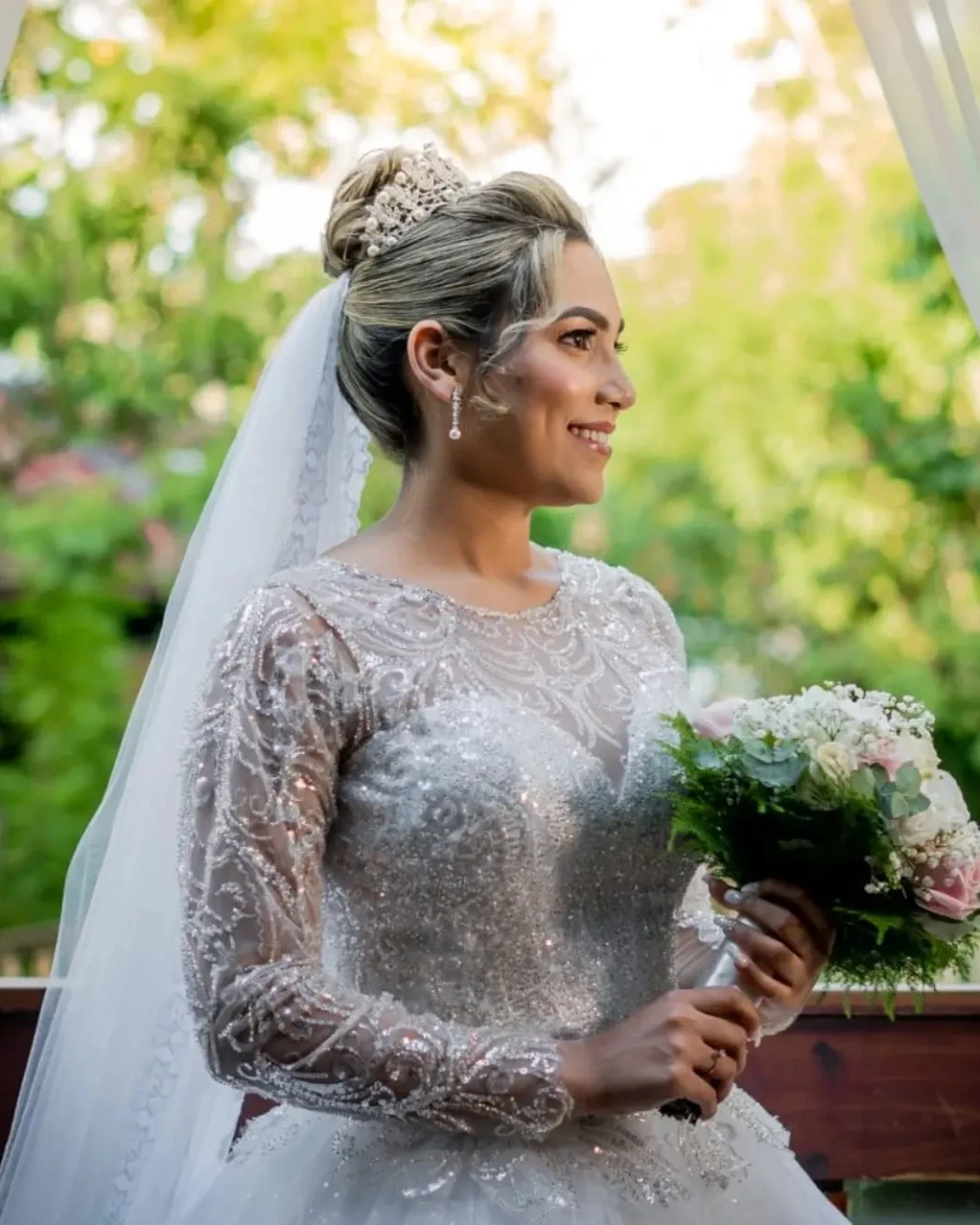 - Vestido de noiva com renda, brilho ou estilo minimalista
